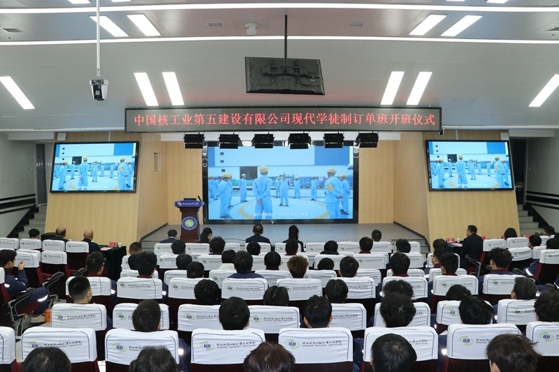 11月3日上午,学校与中国核工业第五建设有限公司在高新校区诚信厅举行现代学徒制订单班开班仪式。校企双方领导、相关部门负责人、企业导师、校内班主任及订单班全体学生共同参加了此次活动。仪式由学校副校长刘明学主持。