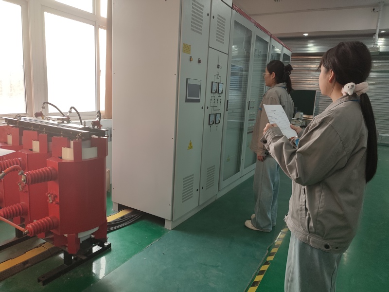 本次比赛项目为(1)35kV进线柜、馈线柜倒闸操作,(2)变压器巡视,(3)整流器柜巡视,重点考察对变配电设备正常运行标准的掌握及状态的判断,要求每组选手能正确进行停送电操作及设备巡视,紧密对接变电运行值班员证书与企业岗位要求,旨在考察学生倒闸操作标准化操作流程、设备巡视作业标准化操作流程及职业素养。解晨、毛晓姝老师为选手们进行现场评分。