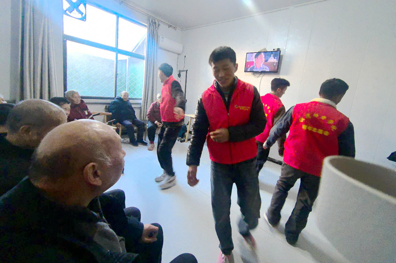 在趣味互动区,志愿者跳起藏族特有的锅庄舞,舞步欢快灵动,尽显活力;随后,悠扬的藏族歌曲缓缓响起,纯净的歌声萦绕在活动现场,深深感染了在场的每一位老人。心理工作室精心设计的互动环节与民族表演相结合,以“唤醒美好回忆、促进情感表达”为目标,让老人们在欢乐氛围中主动交流,逐渐打开话匣子。一位独居老人在观看表演后笑着说:“好久没这么热闹了,看着孩子们跳舞唱歌,心里亮堂多了。”此外,志愿者们还为老人提供生活互助服务,帮忙整理房间、修剪指甲,在细致的照料中传递温暖,实现“生活帮扶”与“心理慰藉”的同步推进。